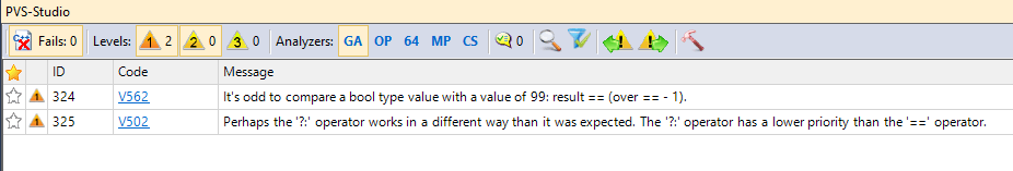 Рисунок 2 - Несколько новых предупреждений анализатора