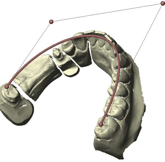 Рисунок 4. Один из этапов работы с отсканированной челюстью для создания моста. Обратите внимание, что слева не хватает зубов, а по краям два зуба уже обточены, чтобы можно было проектировать мост, который на них будет крепиться.