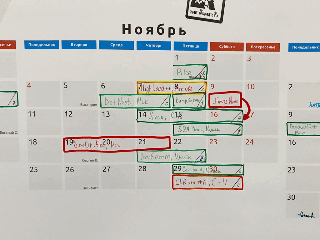 И напоследок хочу задать вопрос. Интересно, это всё конкуренция между крупными организаторами за внимание участников и партнеров, или есть какие-то обоснованные доводы в пользу такого расписания конференций? В связи с этим, хотелось бы, чтобы сами организаторы дали обратную связь и рассказали свои мысли по этому поводу.