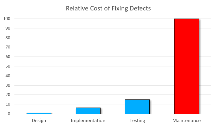 После релиза исправление уязвимости обходится в 15 раз дороже, чем во время разработки, и в 100 раз дороже, чем на этапе проектирования.