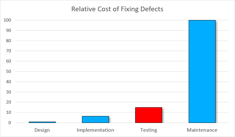 По данным IBM System Science Institute, относительная стоимость исправления уязвимости изменяется следующим образом: