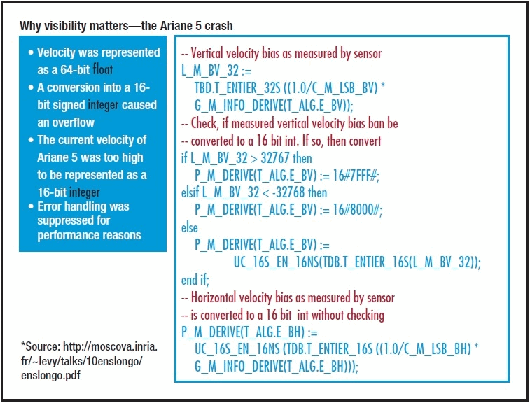 Дефект на Ariane 5 не был вызван одной причиной. В ходе всей разработки и процессов тестирования существовало много стадий, на которых данный дефект мог быть выявлен.