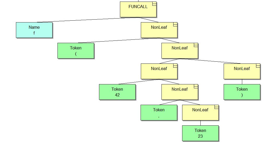 Эта простая функция после обработки парсером будет выглядеть так (желтым выделены нетерминальные узлы):