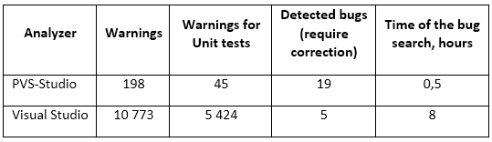 Конечно, очевидный перевес наблюдается на стороне PVS-Studio. Но, повторюсь, встроенный в Visual Studio анализатор предназначен, в первую очередь, для улучшения дизайна и оптимизации кода, а не для поиска ошибок. В то время как PVS-Studio, наоборот, "заточен" на поиск ошибок с выдачей минимально возможного уровня ложных предупреждений. К тому же, разработчики CruiseControl.NET, по всей видимости, не применяли вообще никаких анализаторов. Я уверен, что при регулярном использовании анализатора, встроенного в Visual Studio, качество их кода было бы значительно лучше, а вероятность возможной ошибки ниже. Что уж говорить о PVS-Studio. Такие инструменты позволяют достичь максимального эффекта именно при регулярном использовании, а не "раз в год".